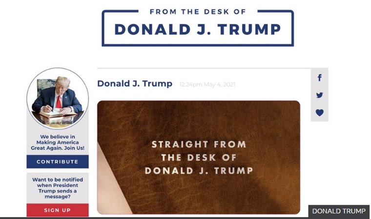 Поранешниот американски претседател Доналд Трамп отвори своја интернет платформа каде ќе може да поставува пораки кои другите ќе можат да ги споделуваат на Твитер и на Фејсбук, каде неговите налози се суспендирани.