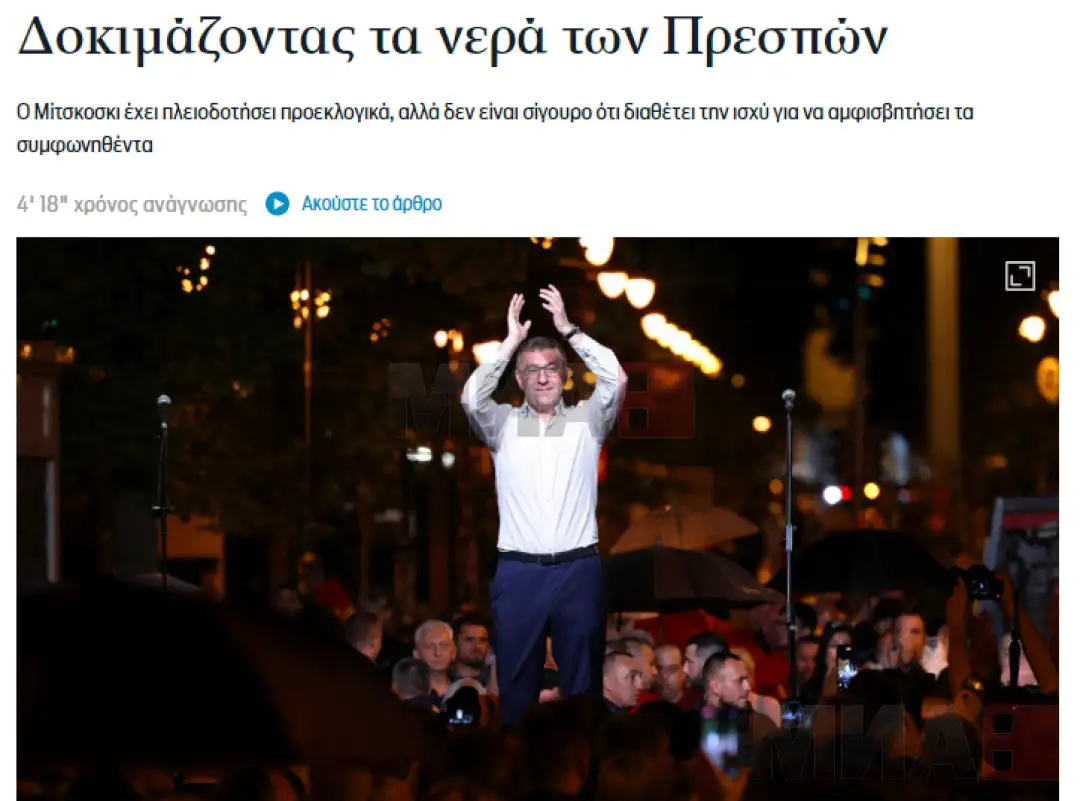 Онлајн изданието на весникот „Прото тема“ пишува дека големото прашање е дали и победникот на парламентарните избори и иден премиер Христијан Мицкоски ќе го користи името „Република Македонија“, но и дали „ќе се обиде да ги искористи огромните нерешени прашања и „црните дупки“ што зад себе ги остави Договорот од Преспа“.