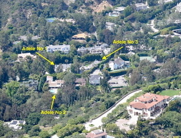 Покрај нејзиниот дом на Беверли Хилс, Адел поседува и замок во Кенсингтон, Лондон, кој го купи за 11 милиони фунти на почетокот на 2021 година, како и два други имоти во Беверли Хилс, купени во 2016 и 2019 година. Куќите во Беверли Хилс на пејачката се еден до друг, а поранешниот сопруг Симон Конецки се вселил во еден од домовите заради заедничко родителство на нивното дете Анџело. Познати личности како Мила Кунис и Астон Качер, Никол Кидман и Кит Урбан и Кети Пери исто така поседуваат домови во соседството на Адел. Иако има три имоти во Лос Анџелес, таа редовно патува дома во Лондон и максимално го користи имајќи повеќе имоти низ светот.