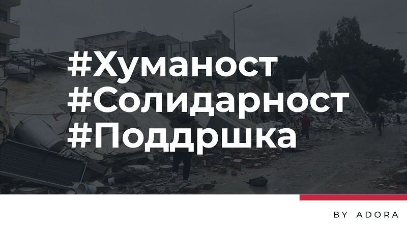 Во овие моменти најважна е солидарноста, а македонскиот народ сочувствува со нашите пријатели од Турција и погодениот регион. Адора изразува длабоко сочувство до семејствата на настраданите во земјотресите, а средствата уплатени преку Халк банка – Скопје се со цел барем малку да се помогне и да се обезбедат неопходните намирници и средства за преживеаните, иако загубата на човечките животи е ненадоместлива.