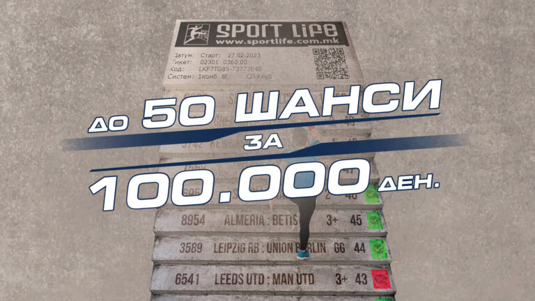 Започна акцијата „До 50 шанси за 100.000 денари“ на Sport Life, која ќе се одвива низ 4 неделни етапи, од 27.02. до 26.03. 2023 година.
