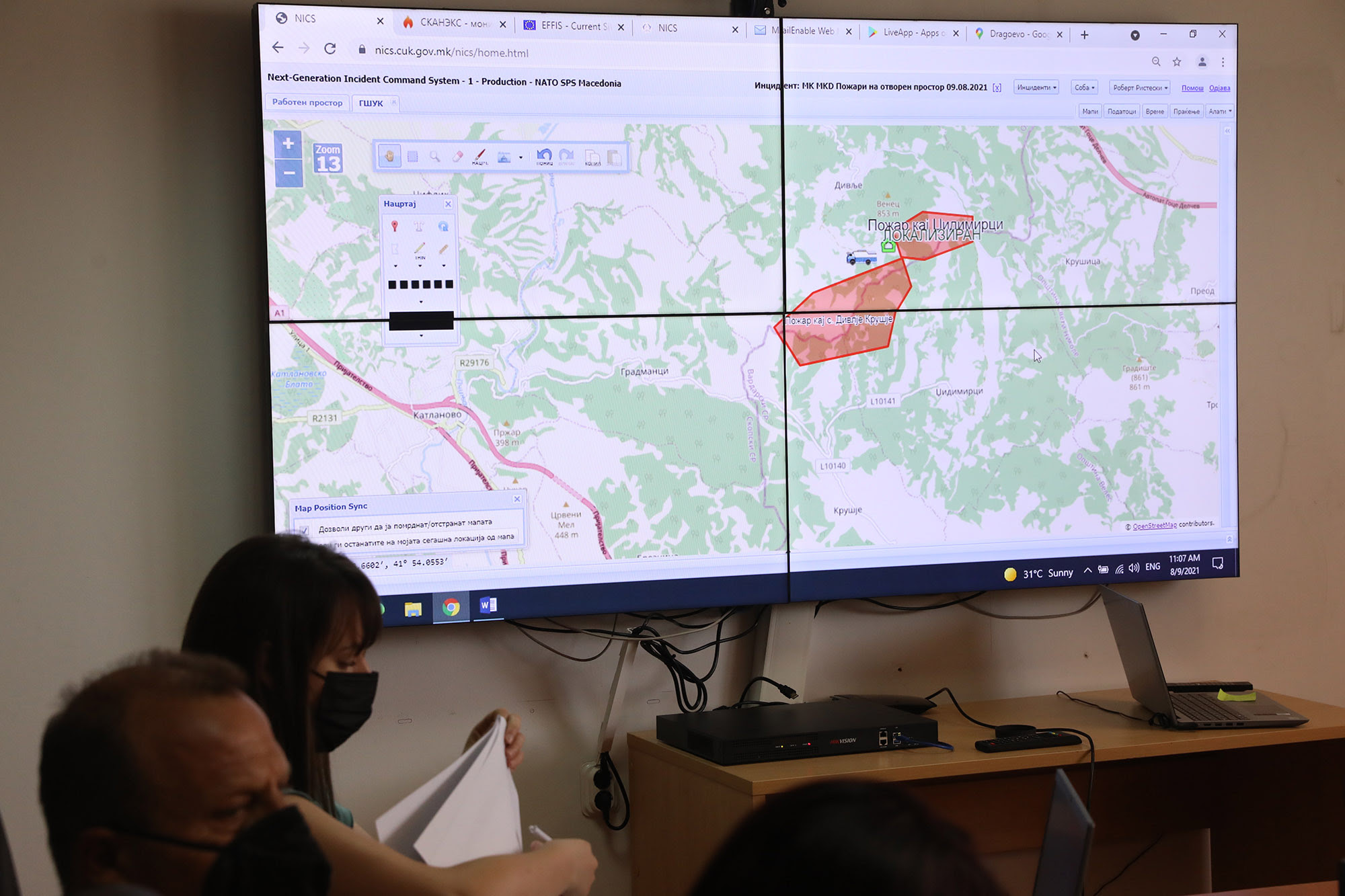 – Преку овој систем имаме просторно прикажување на ситуацијата на терен односно, членовите на Главниот штаб на едно место на екран ги гледаат сите податоци, гледаат на кои места имаме активен пожар, гледаат каков е неговиот интензитет, гледаат каде има изгаснат пожар, за којшто постои можност повторно да се реактивира. Сите податоци од терен ги имаме на едно место, тоа помага на Главниот штаб да носи квалитетни одлуки, да врши подобра координација на силите на терен, рече вчера директорот на ЦУК Стојанче Ангелов.
