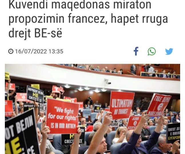 „Македонскиот парламент го усвои францускиот предлог, се отвора патот кон ЕУ“, „Парламентот на Северна Македонија го одобри францускиот предлог-68 пратеници гласаа ЗА“, се само дел од насловите на информациите кои ги пренесуваат албанските медиуми, кои во континунитет информираа околу расправата во македонскиот парламент во врска со францускиот предлог.