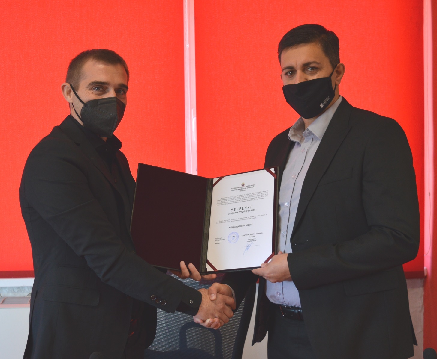 Уверението за избран градоначалник на општина Илинден на градоначалникот Александар Георгиевски, му го врачи претседателот на Општинската изборна комисија, Гоце Крстевски на пригодна свеченост што се одржа во конференциската сала на Домот на култура „Илинден“, со што и официјално тој ја презема функцијата градоначалник на општина Илинден.