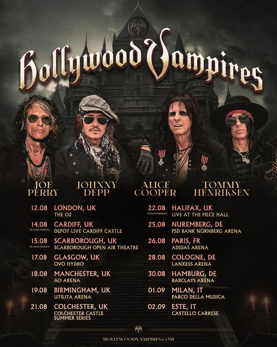 „Холивуд вампири“, група во која се Алис Купер, Џони Деп, Џо Пери и Томи Хенриксен, ја објавија својата прва турнеја во Велика Британија и Европа по нивната пауза.