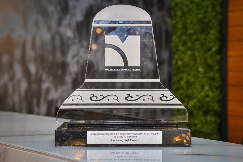 На церемонијата за доделување на годишните награди на Македонската берза за 2023 година за котираните компании, за членките на Берзата и за другите субјекти поврзани со македонскиот пазар на хартии од вредност, која се одржа на 21.12.2023 година, АЛКАЛОИД АД Скопје е добитник на престижната награда за Најтранспарентно котирано акционерско друштво за 2023 година по избор на медиумите.