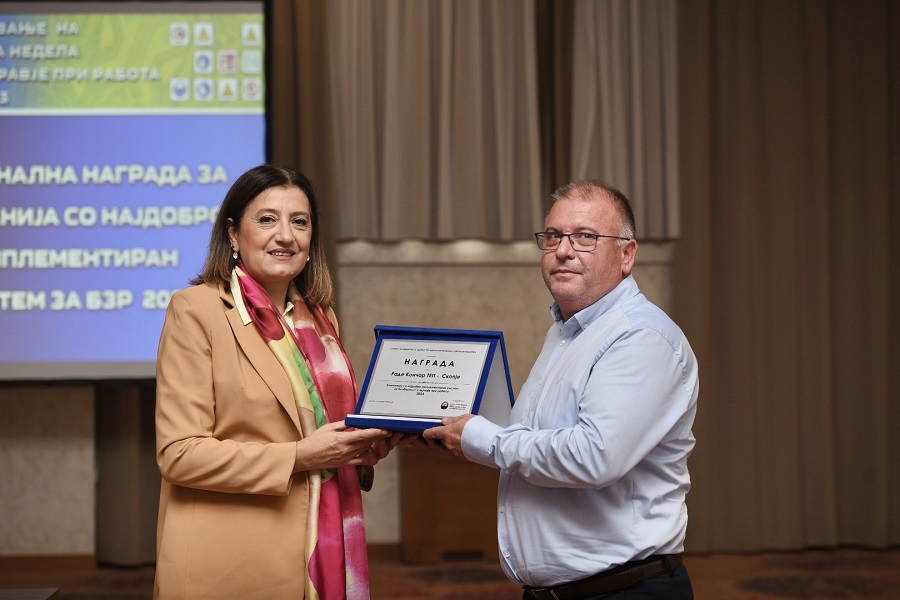 На крајот од настанот беше доделена и Националната Награда за компанија со најдобро имплементиран систем за Безбедност и здравје при работа за 2023 година.