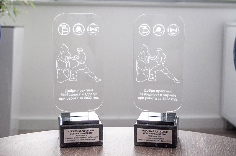 „Алкалоид“ со две признанија за придонес во безбедноста и здравјето на своите вработени