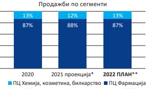 Консолидирани продажби од над 224 милиони евра, што е за 8 отсто повеќе во однос на очекуваните за 2021 година, раст од 7 отсто на консолидираната добивка пред финансиските трошоци, даноците и пред амортизацијата (EBITDA), како и пораст на консолидиранaтa нето-добивка од најмалку 7 отсто во однос на очекуваната за 2021 година, предвидува Бизнис планот за 2022 година на нашата најголема фармацевтска компанија, „Алкалоид“ АД Скопје. Во документот што е објавен на Македонската берза, меѓу другото се вели дека по профитни центри, 87 отсто од консолидираните продажби се очекува да ги реализира ПЦ Фармација, а 13 отсто ПЦ Хемија, козметика, билкарство. Се очекува дека 35 отсто од консолидираните продажби да бидат остварени на домашниот пазар, додека, пак, 65 отсто од извоз.