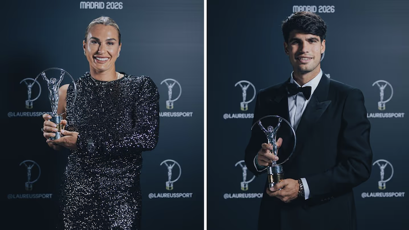 Шпанскиот тенисер Карлос Алкараз и неговата белоруска колешка Арина Сабаленка ја освоија наградата за спортист на годината Лауреус, додека европскиот фудбалски шампион ПСЖ ја освои наградата за тим на годината на церемонија одржана синоќа во палатата Сибелиус во Мадрид.
