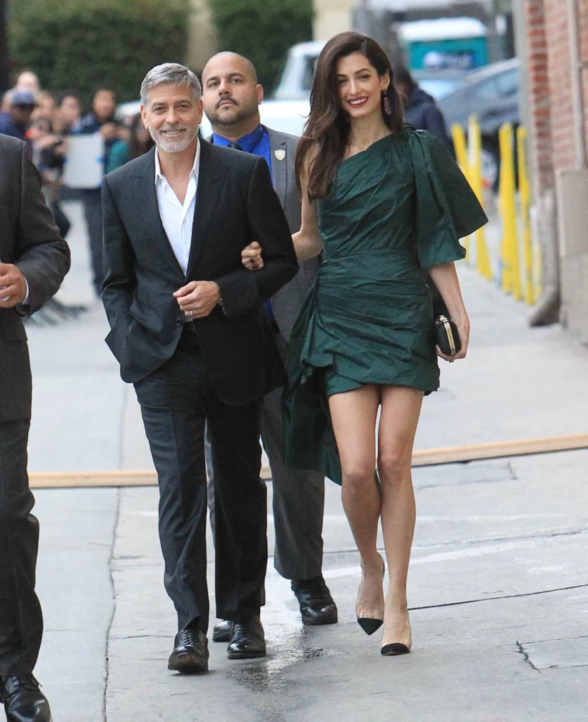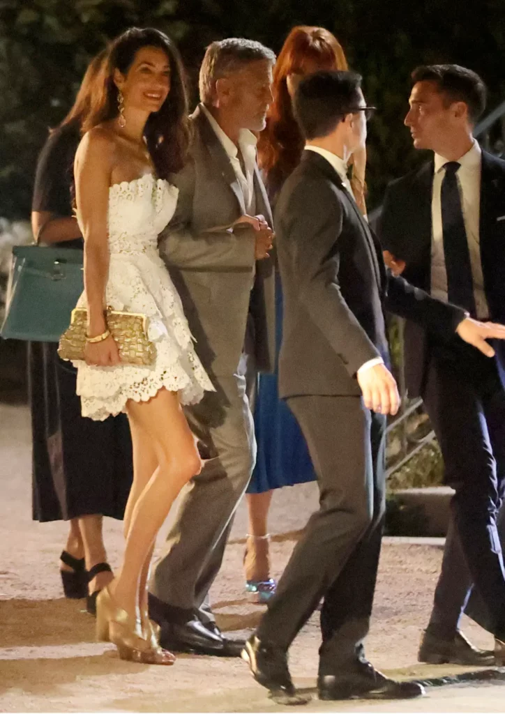 Амал и Џорџ беа на одмор во езерото Комо во текот на целиот јули. Пред две недели, според Vogue, таа облече уште еден мини фустан на Ermanno Scervino кој беше покриен со зелени светки со детали од тантела на врвот и на дното.