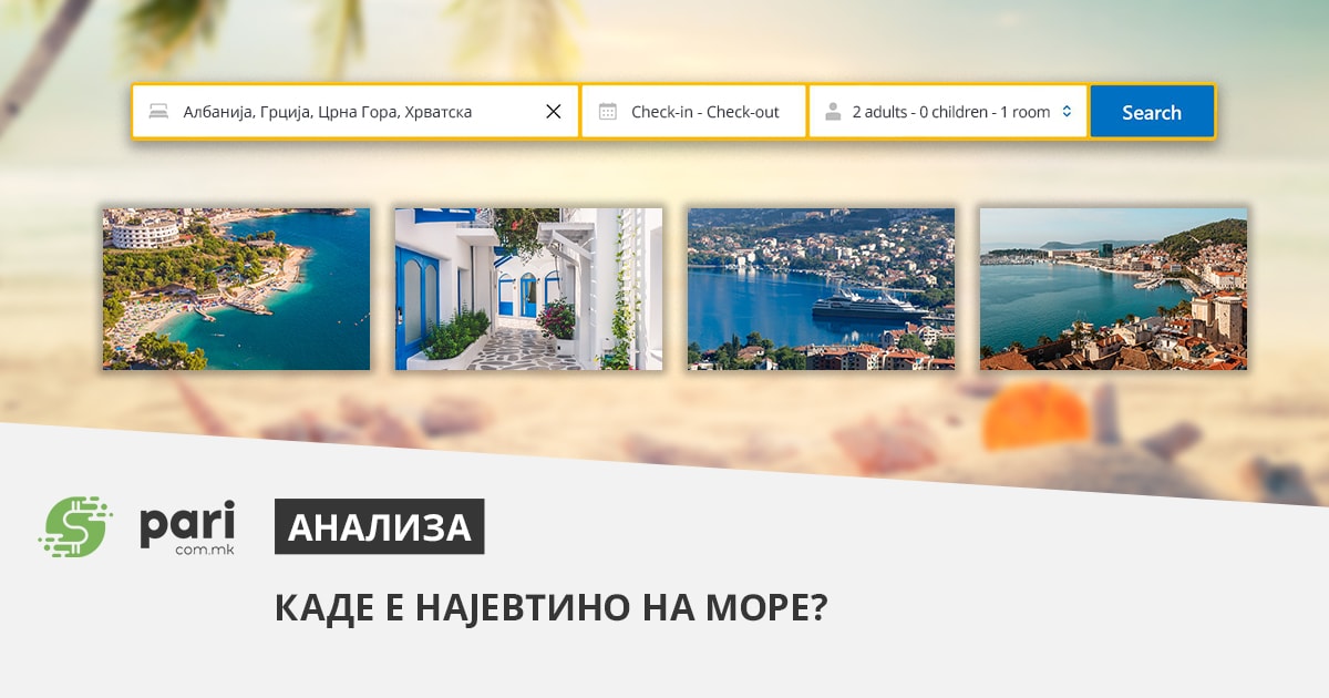 Ова лето особено се вжештија цени на сместувањата во Грција. Како и да се оди, во приватен аранжман, или преку агенција, само за сместување во шпицот на сезоната, односно во првата недела на август, за оваа дестинација треба да се издвои значајна сума на пари. Од Грција, поскапа е Хрватска, но таа е и помалку посетувана од македонските граѓани. Што се однесува до Црна Гора, пристојни цени има на југот – во Улцињ, а потоа се „вжештуваат“ нагоре, по текот на крајбрежјето. Во Албанија се најниските цени.