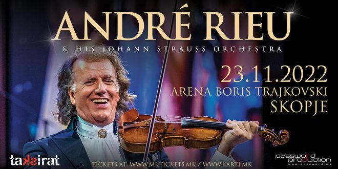 Светската ѕвезда Андре Риу, познат како „современиот крал на валцерот од Австралија до Мексико, на 23 ноември ќе одржи концерт во арената „Борис Трајковски“ во Скопје. Тој во Македонија доаѓа со неговиот 60-член „Јохан Штраус оркестар“, најголемиот приватен оркестар на светот.