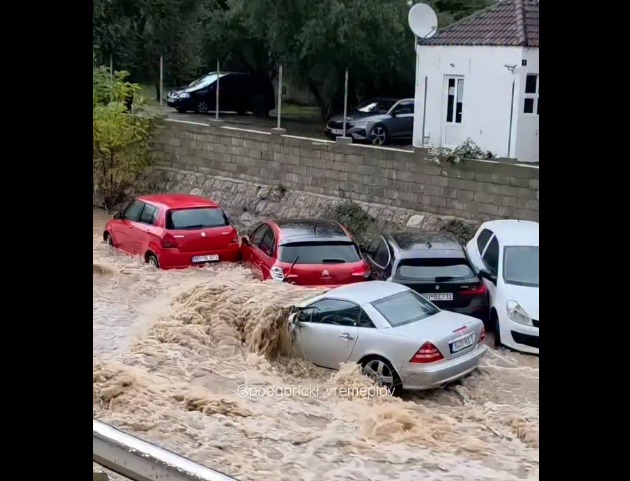 Во текот на изминатите неколку часа, поради обилните врнежи од дожд, реката Грѓевица се надојде, поплавувајќи ги возилата што возачите ги оставија синоќа во нејзиното корито, кое е и најголемиот паркинг во центарот на Будва.