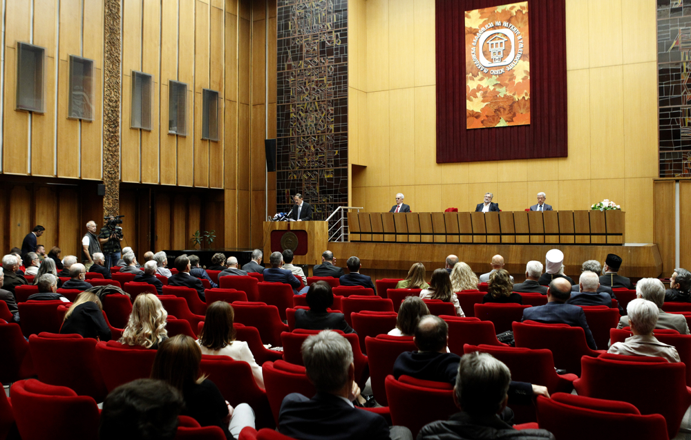 Признанија (диплома и медал) „Блаже Конески“ за 2025-та добија двајца хрватски научници – Емилио Марин и Ивица Баковиќ и им ги врачи претседателот на Академијата, академик Живко Попов, во рамки на свеченоста за Денот на МАНУ.