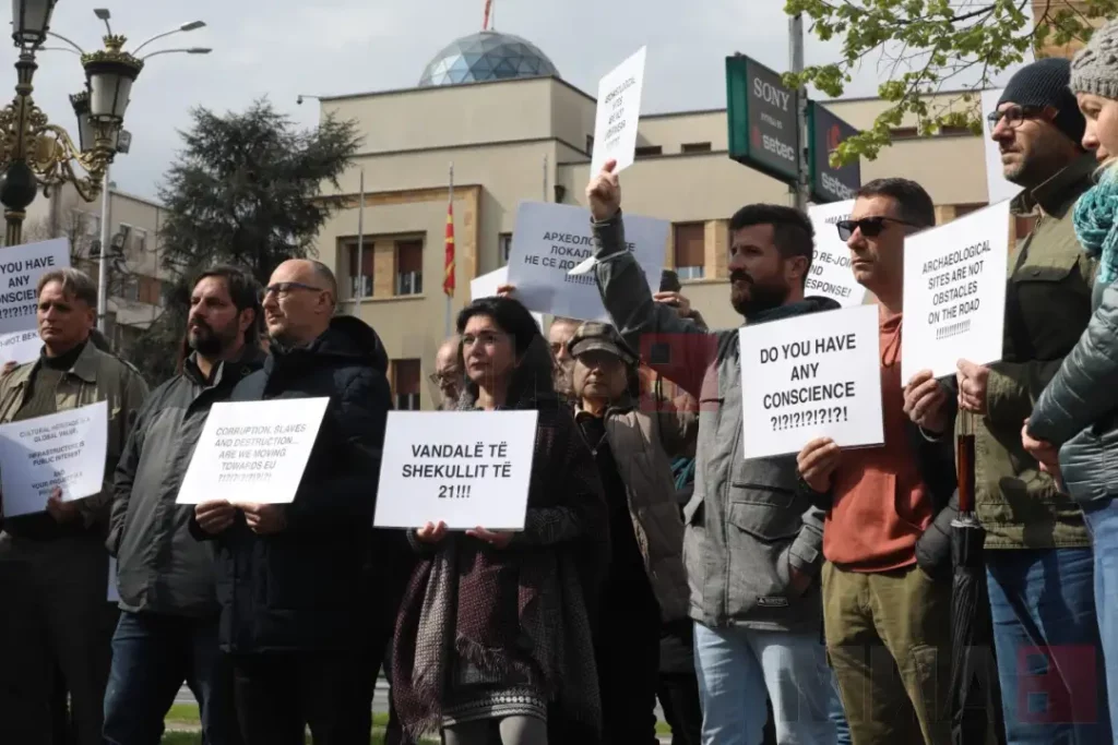 Претставниците од Македонското археолошко друштво (МАД) и ИКОМОС Македонија на денешниот собир пред Собранието испратија апел до пратениците да спречат усвојување на измени во Законот за заштита на културното наследство, со кои, како што велат, бескрупулозно и свесно се уништува културно наследство со катастрофални последици, а во име на „поголем јавен интерес‟, зад кој се крие „профитерска зделка од огромни размери“.