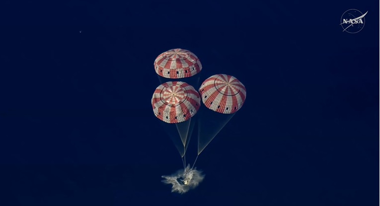 Капсулата „Орион“ на НАСА нежно слета во океанот покрај брегот на Калифорнија кратко по 17 часот по локално време, завршувајќи ја мисијата што однесе четири астронаути подлабоко во вселената од кој било друг пред нив.