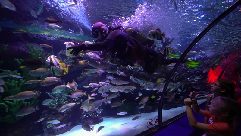 Голема атракција е и аквариумот во Анталија, еден од најголемите комплекси од ваков вид во светот. Располага со над 40 тематски резервоари и тунел долг 131 метар, каде над посетителите пливаат ајкули, ражи и јата риби, создавајќи чувство како да се чекори по морското дно. Во комплексот се сместени и тропскиот парк за диви животни, како и затворена снежна зона со вештачки снег и ледени скулптури, каде температурата е -5°C, дури и кога надвор е над 40°C. Во паркот се наоѓа и киното „Oceanride XD“, каде може да се доживее виртуелно патување низ океанот.