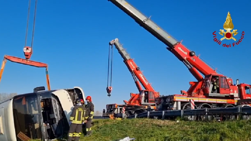 🔴 #Bus #Ucraina, #vigilidelfuoco impegnati con due autogru per sollevare il mezzo ribaltato [#13marzo 9:30]#A14 Forlì-Cesena pic.twitter.com/avIfDarEci
