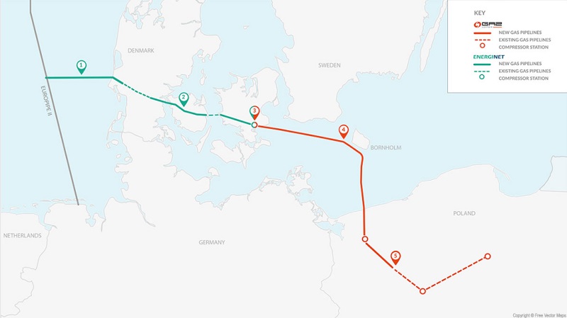 Стратешкиот инфраструктурен проект меѓу Полска и Данска ќе минува по дното на Балтичкото Море и ќе има капацитет од 10 милијарди кубни метри годишно, што е приближно еднакво на количината на гас што Полска моментално го увезува од Русија.