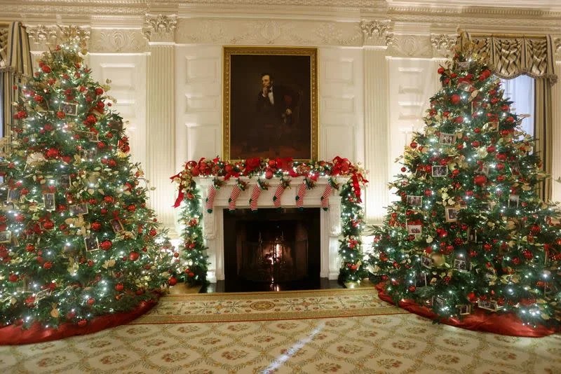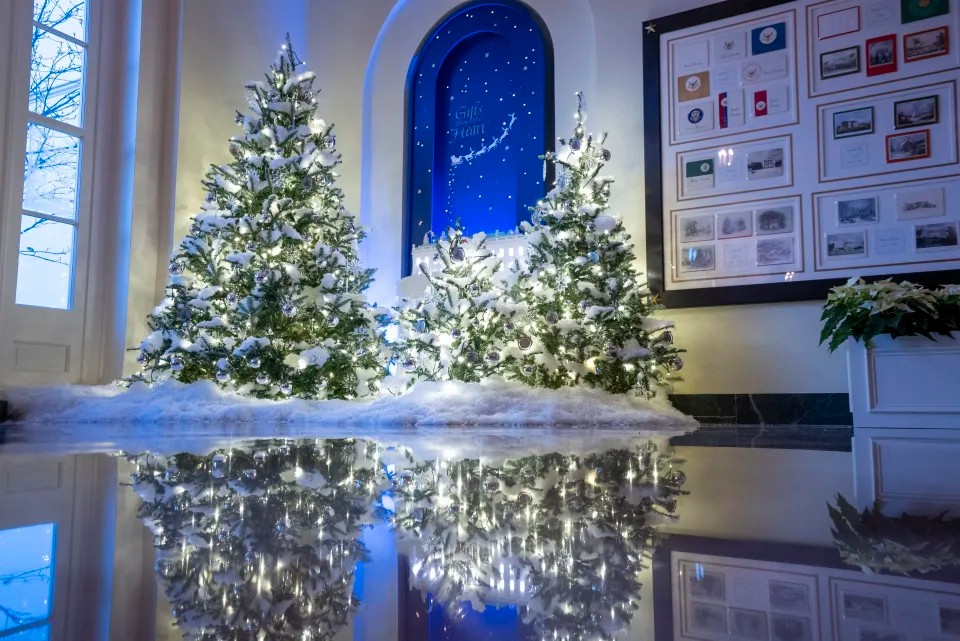 Во знак на единство, едно дрво има слики од претходни претседателски семејства, и демократи и републиканци, вклучувајќи ги и Обама, Буш, Реган, Картерс и Трамп. Друга е покриена со златни ѕвезди, во знак на сеќавање на војниците убиени на служба.