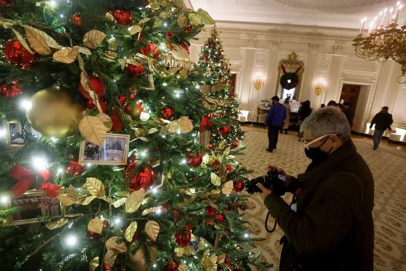 Новинарите ја обиколија украсената Бела куќа пред свеченото откривање.