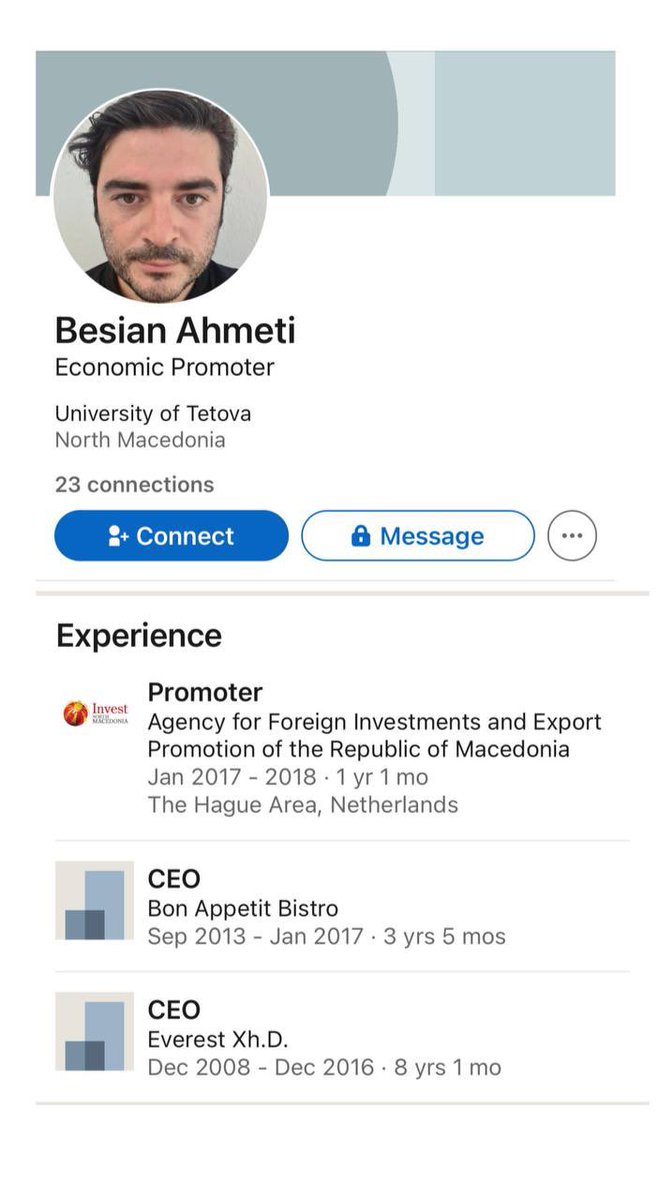 Првата дипломатска мисија како економски промотор, Бесиан Ахмети, внукот на лидерот на ДУИ, ја добил од владата на ВМРО-ДПМНЕ на крајот на 2016-та година во времето кога беше премиер Емил Димитриев.