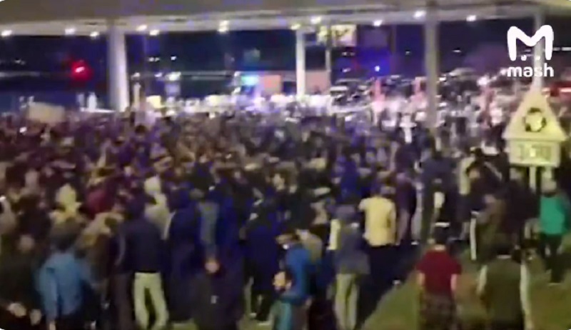 Неколку десетици мажи упаднаа на пистата и зградата на аеродромот во Махачкала, главниот град на Дагестан, руска република со мнозинско муслиманско население