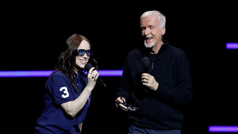 Филмот „Били Ајлиш – Удри ме тешко и меко: Турнејата (во живо во 3D)“, кој ќе се појави во кината на 8 мај преку Paramount Pictures, е ко-режиран од 24-годишната Ајлиш, мулти-добитничка на Греми, и 71-годишниот Камерон, режисерот на „Аватар“ и „Титаник“.