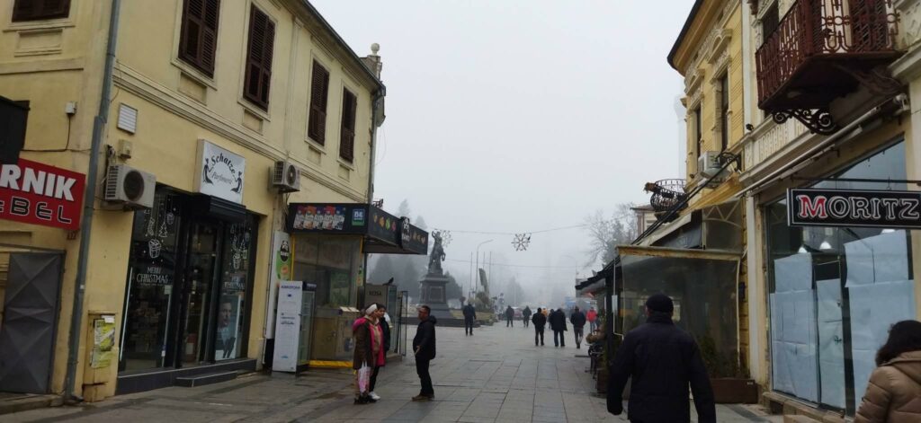 Во исто време воздухот во градот веќе со денови е загаден, повеќе пати над нормалните вредности, па при вдишување пече на грлото и мириса на чад. Според концентрацијата на отровните ПМ честички во воздухот градот де е во црвена, де во жолта зона на предупредување. Маглата и загадениот воздух ги испразнија улиците низ градот.
