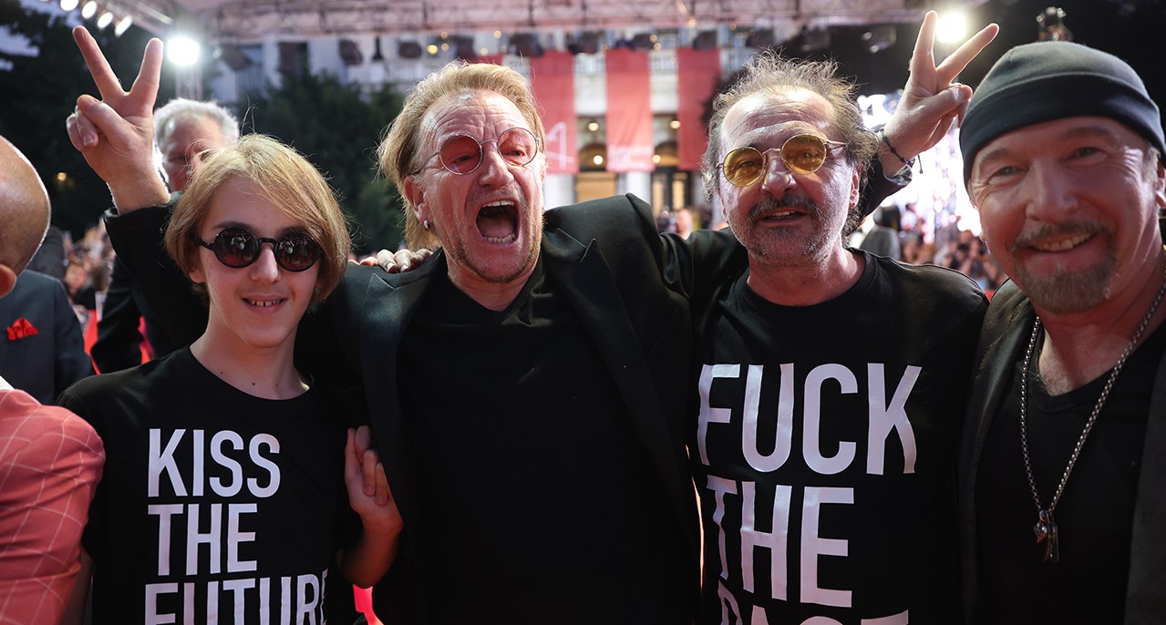 Сараево- Двајца членови на Ју-Ту, Боно Вокс и Д Еџ беа изненадување на вечерта, на синоќешното свечено отворање на 29. Сараевски филмски фестивал. Двајцата легендарни музичари дојдоа заедно со нивните сопруги, како и моделката и активистка Кристи Тарлингтон и новинарката на Си-Ен-Ен, Кристијана Аманпур. Фестивалот отвори со документарецот „Бакни ја иднината“ на Ненад Чичин-Шаин, кој е инспириран од Ју-Ту и нивната значајна улога за воено и повоено Сараево и неговите жители.