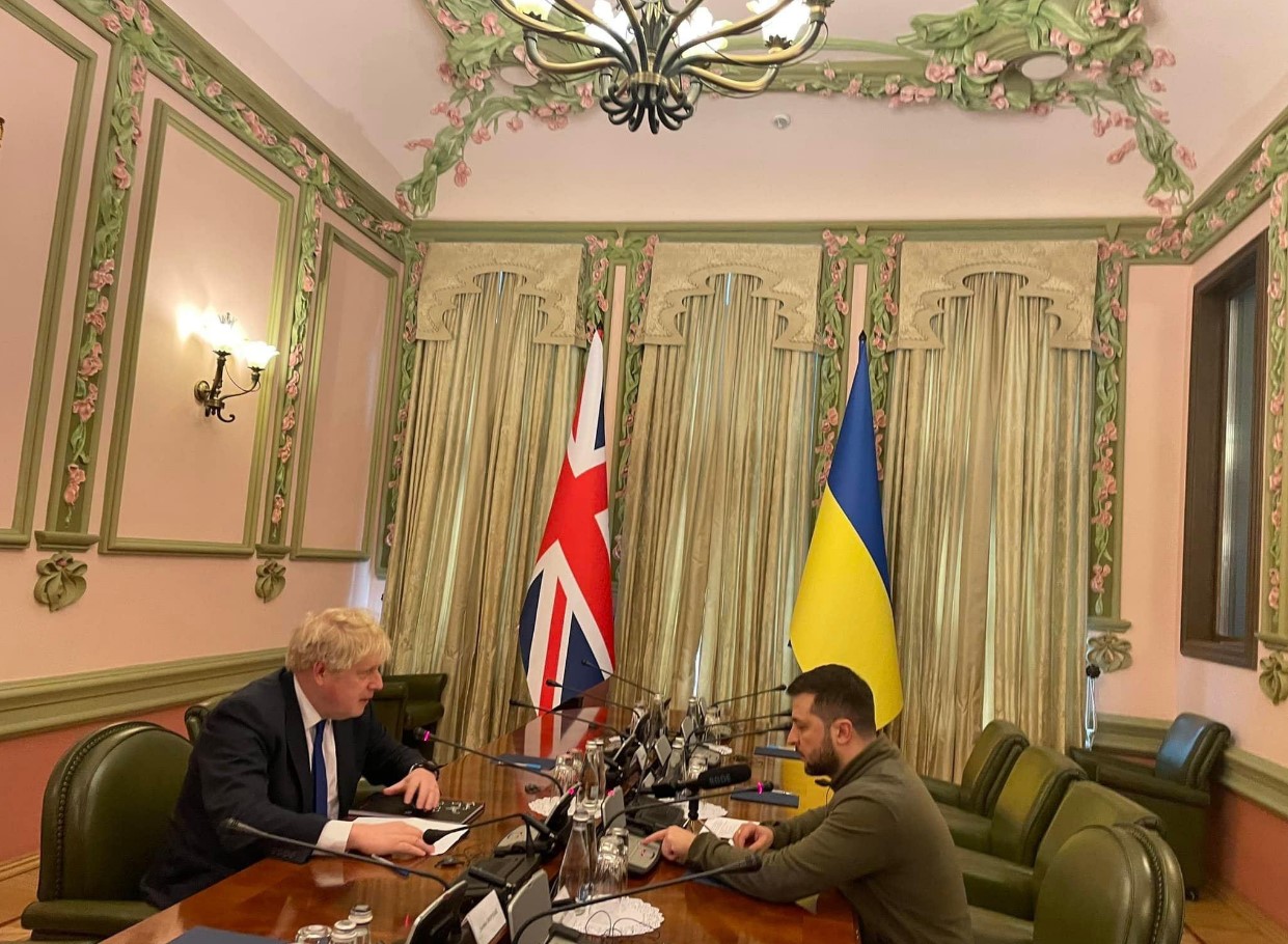 Заменик-шефот на кабинетот на украинскиот претседател, Андриј Сибиха, на Фејсбук објави дека Џонсон и Зеленски одржуваат „тет-а-тет средба“.