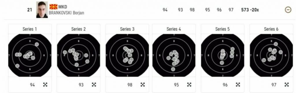 Бранковски успеа да погоди вкупно 573 кругови, во третата серија (од вкупно шест) беше најдобар со 98 кругови.