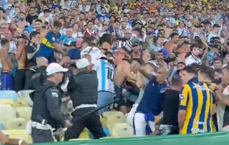 Бразилската полиција интервенираше против аргентинските навивачи пред јужноамериканскиот квалификациски натпревар за Светското фудбалско првенство во 2026 година. За време на нередите кои избија на трибините на стадионот „Маракана“ во Рио де Жанеиро, полициските службеници мораа насилно да ги смират гостинските навивачи, при тоа беа користени и палки.