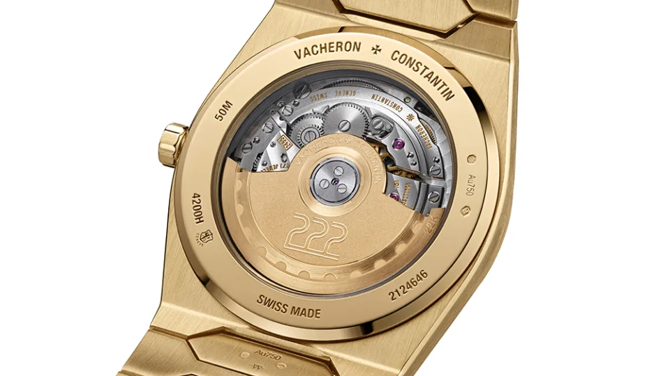 Колку и да е различен 222, тој е и спортски часовник, што значи дека треба да направи повеќе отколку само да изгледа добро. Се напојува со самонавивачкото движење Калибар 2455/2 на Vacheron Constantin, кое има резерва на енергија од 40 часа. Часовникот има обвивка од проѕирен кристал од сафир што ви овозможува да ги видите сите 194 компоненти на куќиштето, вклучувајќи 27 делови, кои работат во хармонија.