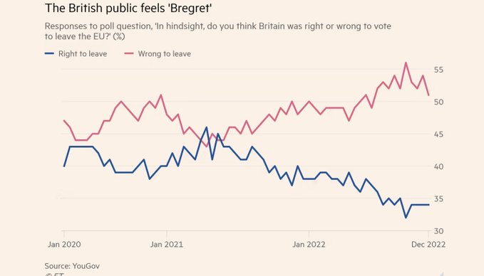 Поранешниот шеф на дипломатијата на Шведска Карл Билт објави анкета според која се повеќе Британци жалат за излегувањето од Европската унија.