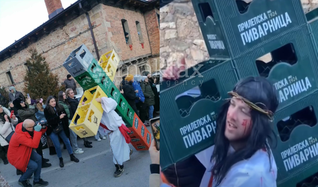 Бројни реакции за Исус што носи пивски гајби во Вевчани