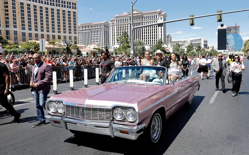 Лас Вегас — Возејќи се по Лас Вегас Стрип во розов ниско-рајдер со две шоугерли покрај себе, Бруно Марс беше прогласен за „нов крал на Лас Вегас“ во петокот.
