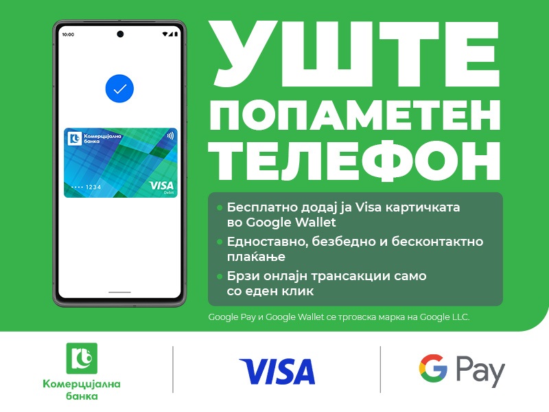 - да се додаде во Google Wallet која било Visa картичка од Комерцијална банка