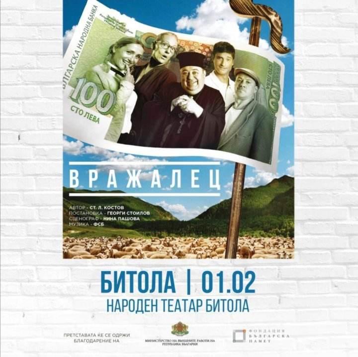 На неколку места во градот има плакати преку кои се информираат и повикуваат граѓаните да ја проследат театарската комедија „Вражалец“ на 1 февруари годинава, на сцената на Битолскиот народен театар, за што влезот е бесплатен.