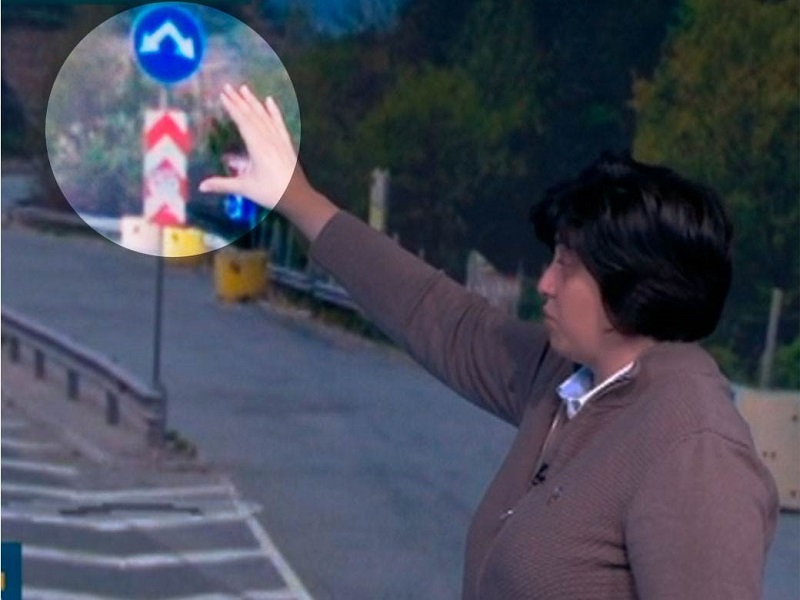Друга снимка покажува дека знак поставен на остров на патот. Според Русинова, тој знак не е правилно поставен и поставен е превисоко. Тој знак треба да биде пониско за добро да се гледа, објаснува Русинова.