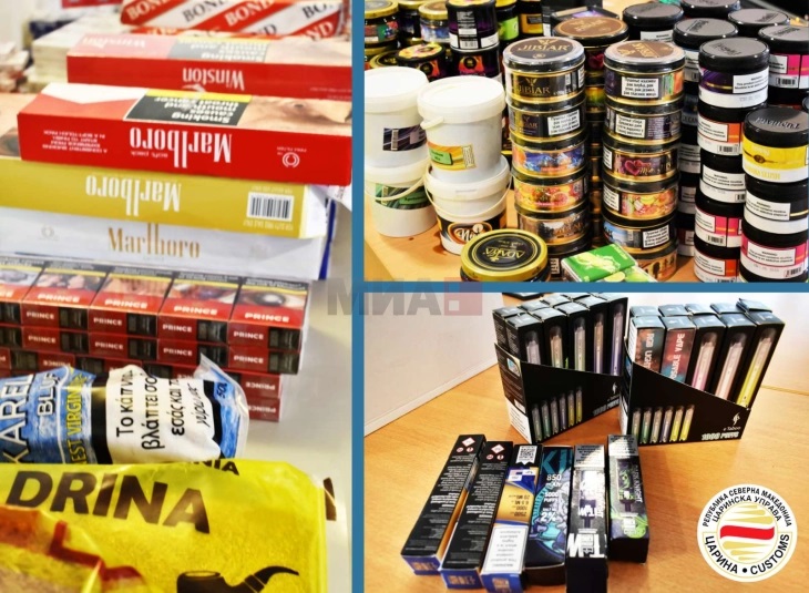 Оттаму посочуваат дека во заедничката акција, спроведена со цел откривање на производи без платена акциза, при контрола на неколку локации во Тетово, кај две правни и девет физички лица беа пронајдени сецкан тутун за пушење, тутун за наргиле, цигари и електронски цигари без акцизни маркички.