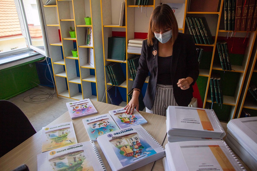 Министерката изрази задоволство од трудот на вработените од училиштето „Димитар Влахов”, кои подготвија брајови учебници за новата програма учениците од прво и четврто одделение.