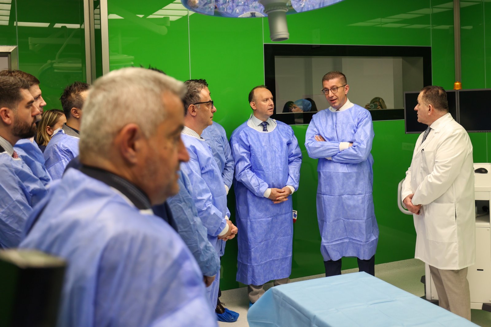 Се очекува за неколку месеци од денеска, уште четири дополнителни сали да бидат пуштени, со што ќе го заокружиме процесот од 10 вакви современи, би рекол, многу модерни сали, овде. И, исто така, очекувам дека од почетокот на летото ќе имаме можност да видиме уште еден проект којшто ќе биде завршен, а тоа е во болницата „8 Септември“, каде што исто така ќе имаме супер модерни операциони сали и со тоа ќе бидеме практично држава број еден во регионот, кога станува збор за ваков тип на операциони сали.
