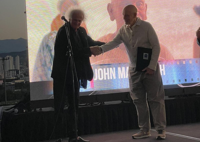 Плакетата му ја врачи Плевнеш, македонски автор со интернационално реноме, кој одржа брилјантна беседа за Малкович.
