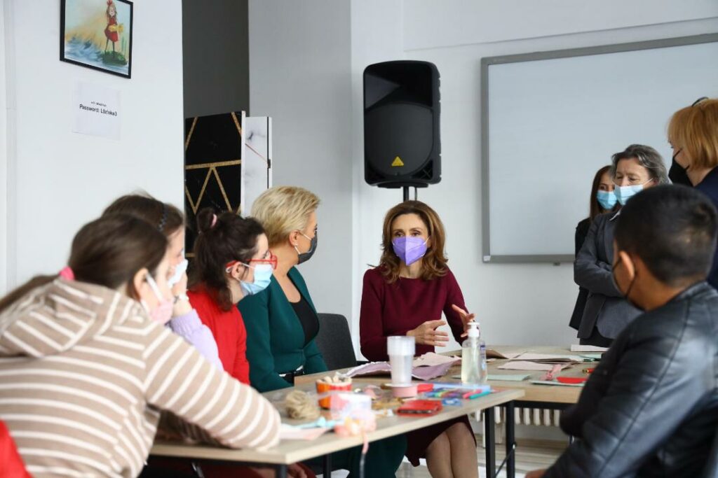 По официјалната цермонија на пречек со највисоки државни и воени почести во претседателскиот кабинет, г-а Горгиевска и г-а Дуда, ја посетија канцеларијата на „Млади Хаб“, каде беше организирана работилница во која учествуваа ученици со попреченост од „ДСУ Св. Наум Охридски“. Младите лица изработија уникатни ракотворби, кои беа изложени во канцеларијата на „Млади Хаб“, со цел да се поттикне јавната свест за создавање еднакви можности за лицата со попреченост и нивна инклузија во општествениот живот.