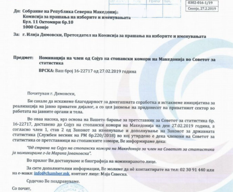 Градската организација на СДСМ ја повика Државната комисија за спречување на корупција да го испита случајот на номинирање и избор на Марика Јовановска како член на Совет за статистика на предлог на ССК, кога нејзината ќерка Данела Арсовска е претседател на ССК.