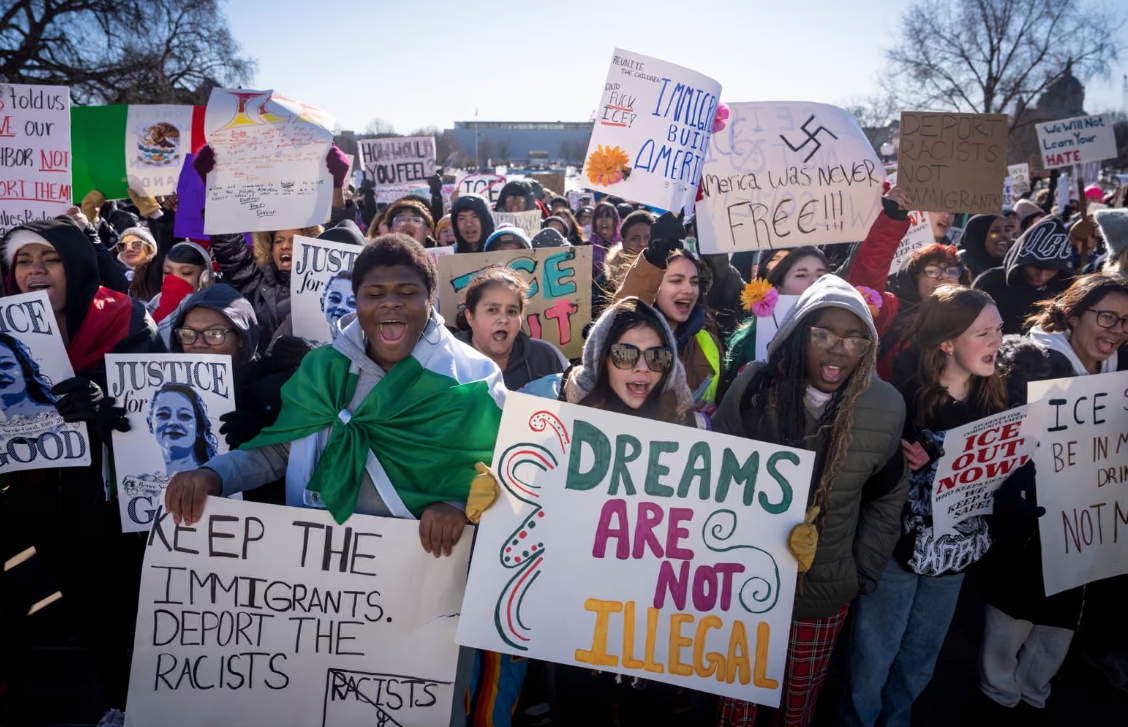 Администрацијата на Трамп мобилизираше 3.000 федерални агенти кои тероризираат низ регионот, апсејќи луѓе на станици за училишни автобуси, на утрински патувања, во продавници за храна и пред цркви.Операцијата го растресе образовниот систем, велат родителите и наставниците. Учениците се борат да продолжат со своите часови, а воедно носат и тага и страв дека тие, или нивните пријатели, семејства и старатели, би можеле да бидат одземени.