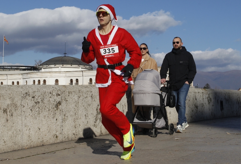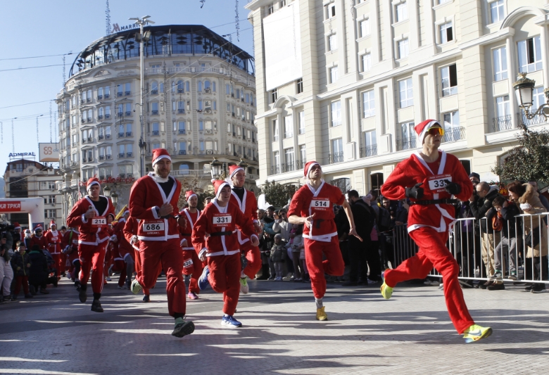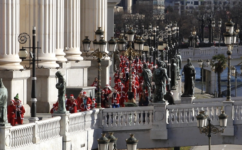 Главниот град денес заличи на европска престолнина и се ишара во црвено-белата нијанса по улиците. На Плоштад Македонија во Скопје денеска се одржа 11-тата Дедомразовска трка. Стотици учесници облечени како Дедо Мраз трчаа два километри низ градот. Глетката предизвика смеа и воодушевување кај граѓаните од сите генерации.