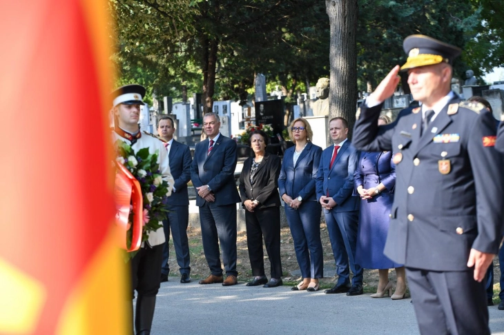 Делегација на Владата положи цвеќе на Партизанските гробишта во Бутел по повод Денот на Армијата
